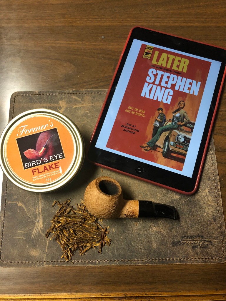 I filmed a first impressions, “Pop-the-Top”, tobacco review of Former’s Bird’s Eye Flake last weekend, in which, I found the blend to be “just ok”. The video for my first impressions, and review of the book Later by Stephen King, can be found here (FYI, watch the video until the end for a special surprise).